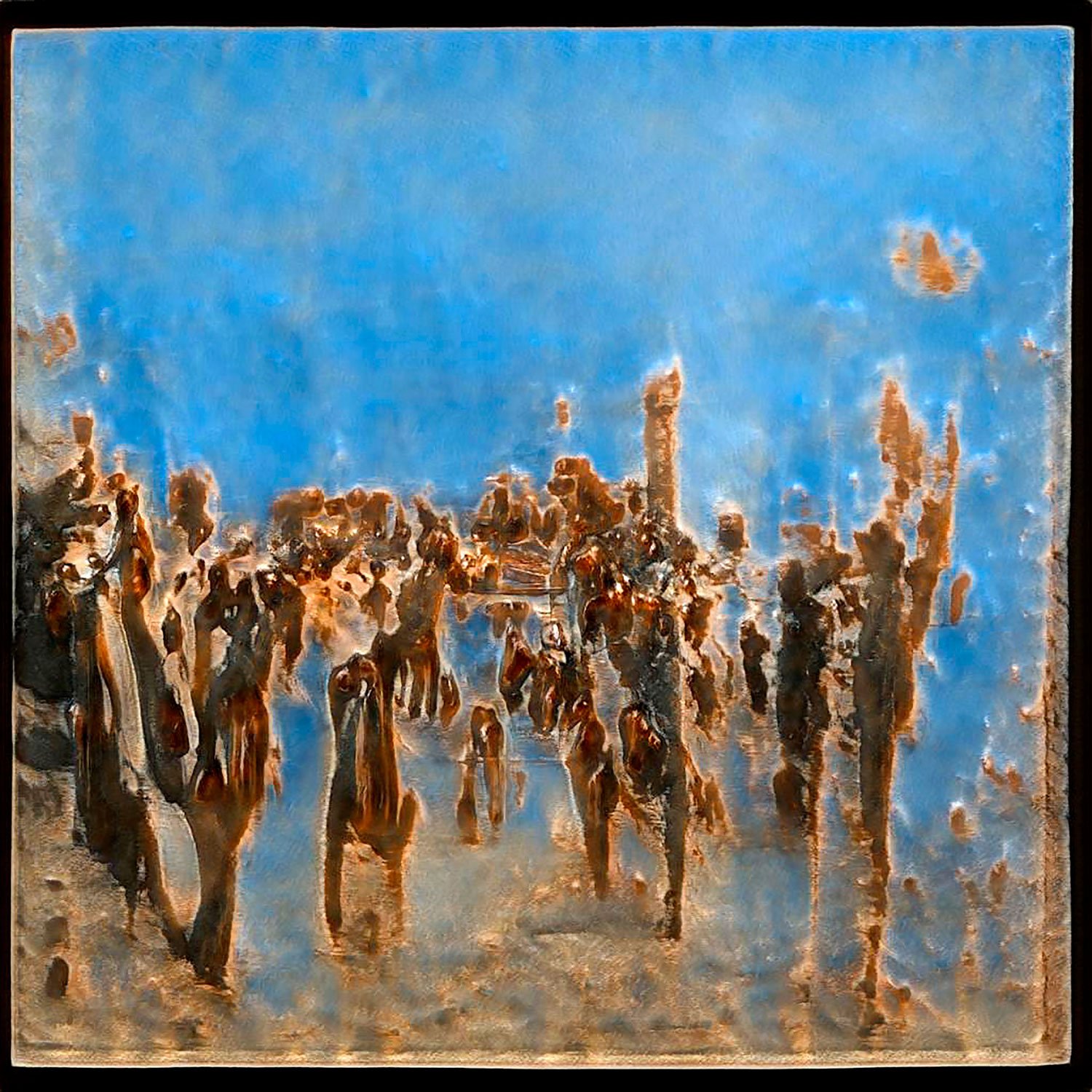 Nous avons découvert que, dans ce processus génératif, le plus intéressant sont les erreurs du système lui-même : les tests ratés, les tests intermédiaires, l’inconscient technologique qui surgit à travers des accidents. Nous assistons alors aux collisions entre la force du hasard et l’art de la prédiction. Nous retrouvons enfin l’ancien paradigme désacralisant de la créativité et de l’art : nous ne pouvons qu’imiter des gestes antérieurs, jamais originaux. Le sens d’une image ne réside pas dans son origine mais dans sa destination.